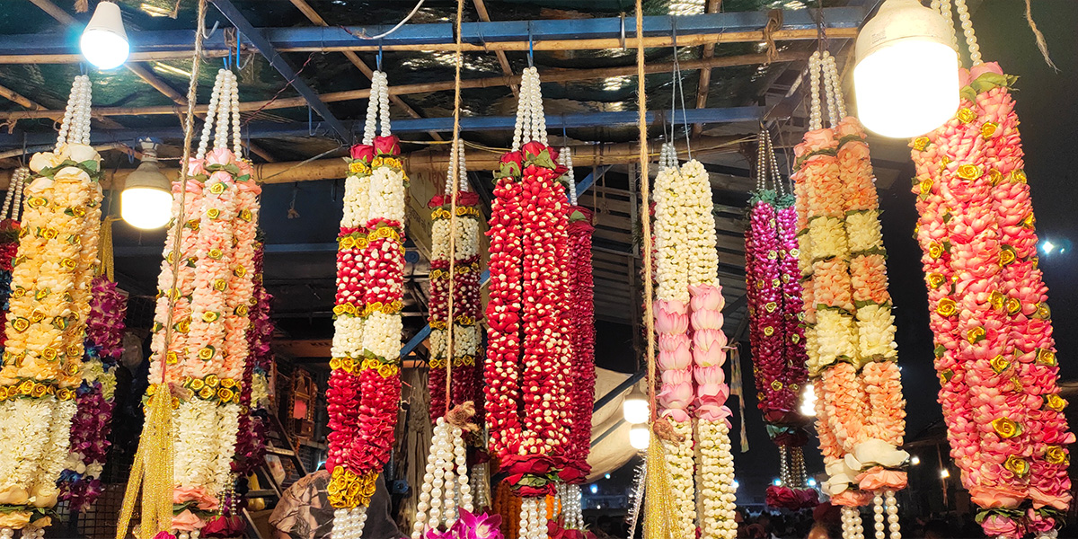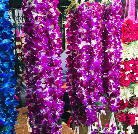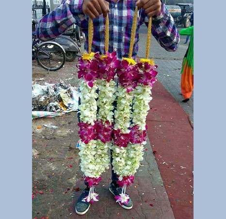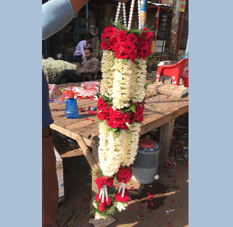 A typical jai mala is made using jasmine flowers along with roses or marigold. The choice of flowers for the garland may vary across regions. In the North, they prefer red roses and white flowers while in the South marigolds and orange colored flowers are traditional preferences.